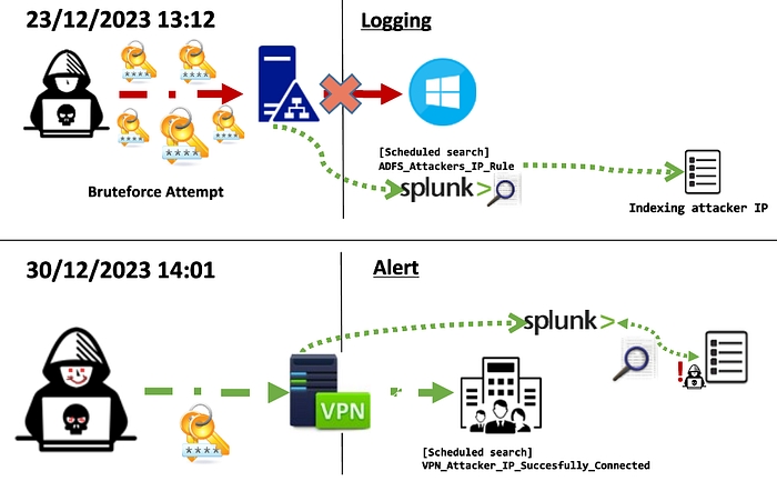 The attacker’s IP successfully connects to an exposed service; or