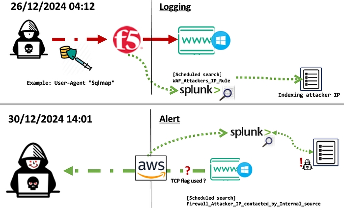 Illustration: logging external attacks with suspicious User-Agents using a WAF.